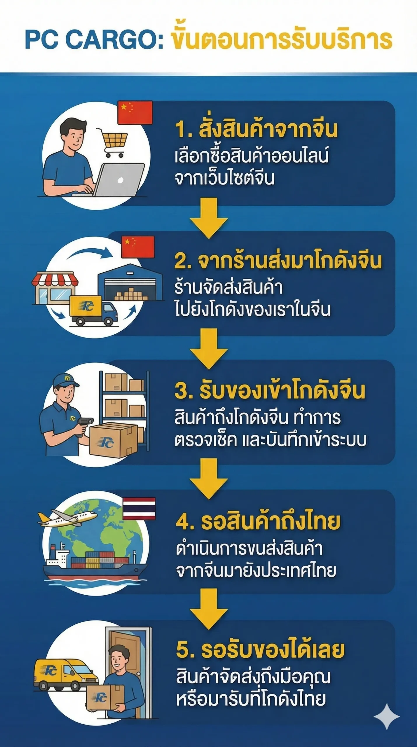 ค้นหาสินค้าจีนหลายล้านรายการกับเว็บออนไลน์ชั้นนำได้ด้วยตัวเอง หรือจะให้พาร์ทเนอร์ผู้เชี่ยวชาญอย่างเราช่วยเหลือในการติดต่อ สั่งซื้อ ชำระเงินออนไลน์ พร้อมบริการขนส่งจากจีนจนถึงมือลูกค้า ก็ทำได้ง่ายๆ สะดวกสบายรวดเร็วทุกขั้นตอน